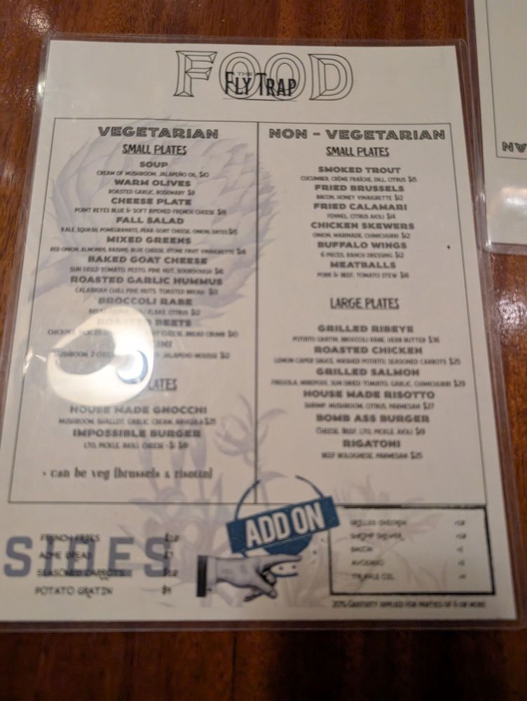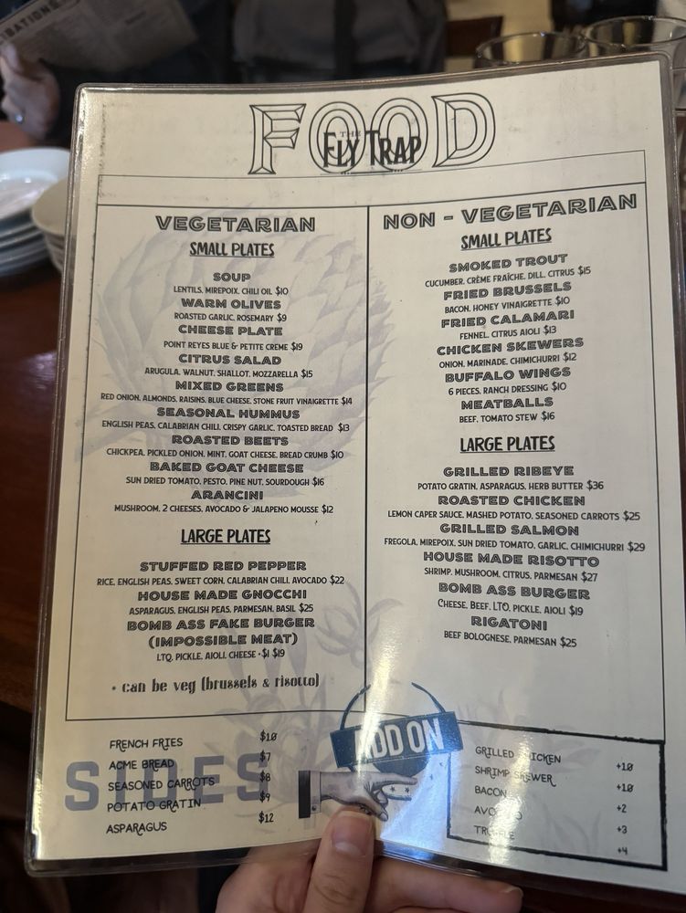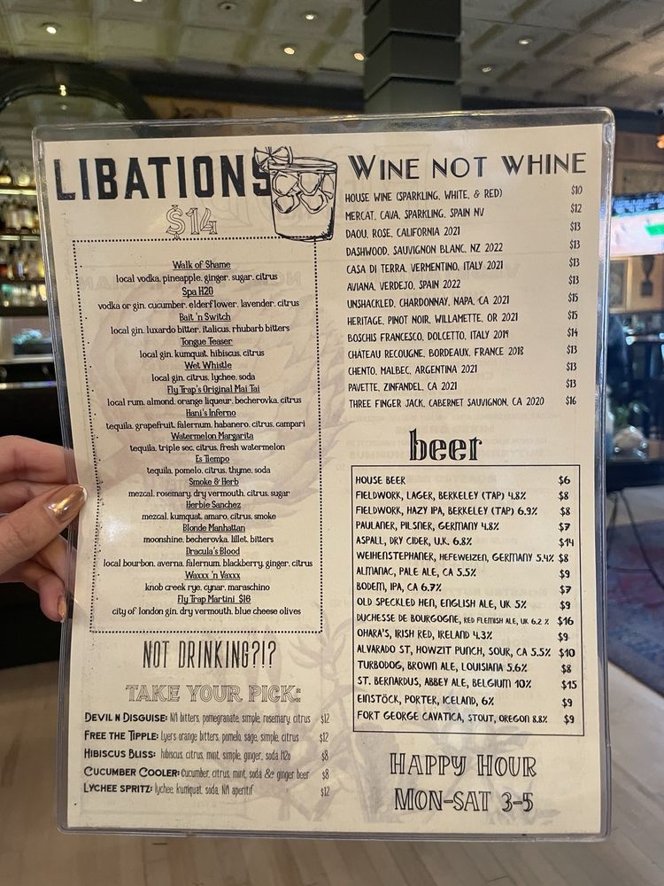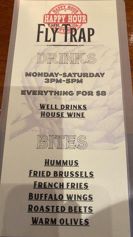 Introducing The Fly Trap, a trendy New American bar in San Francisco offering a wide range of options for all diners. From pescatarian and vegan choices to many vegetarian selections, this spot caters to a diverse crowd. Their happy hour specials, including discounted drinks and appetizers, draw in happy customers like Jon C. and Kaela A. The upscale ambiance and attentive service make for a pleasant dining experience, as noted by Diana G. and Dianna B. The menu boasts tasty options like juicy buffalo wings, seasoned fries, and crispy calamari, perfect for sharing with friends. With features like outdoor seating, free Wi-Fi, and even a pool table, The Fly Trap has something for everyone. Don't miss out on their signature cocktails and delectable dishes next time you're in the area.